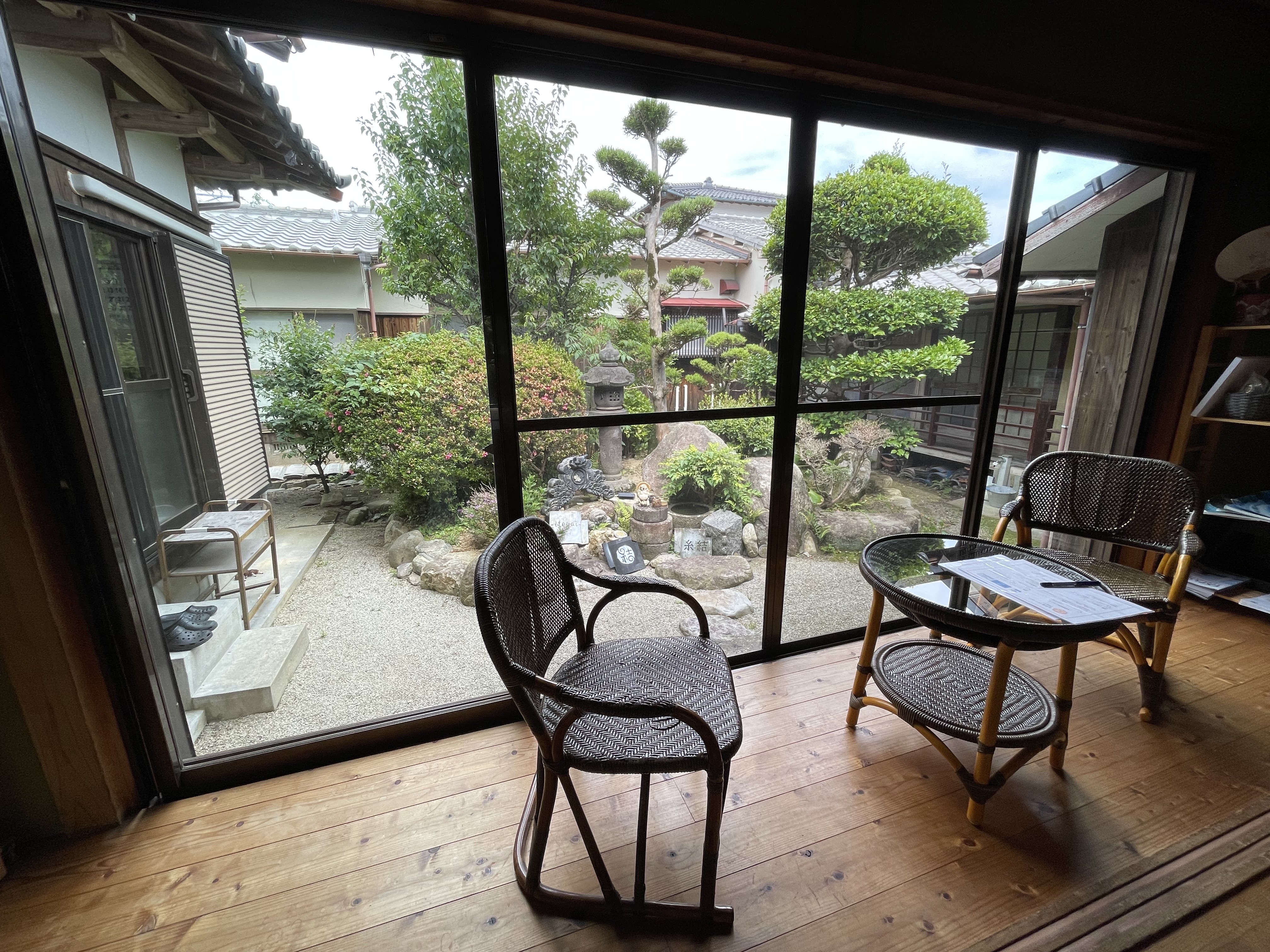 안쪽 정원이 보이는 멋진 곳에서