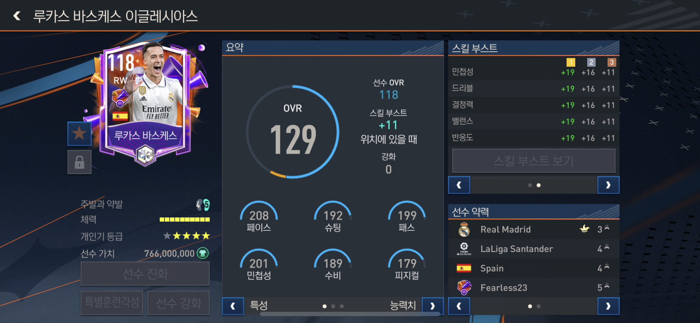 특별스킬은 꾸준한 선수와 빠른드리블, 두 번째활력!!, 팀플레이어~