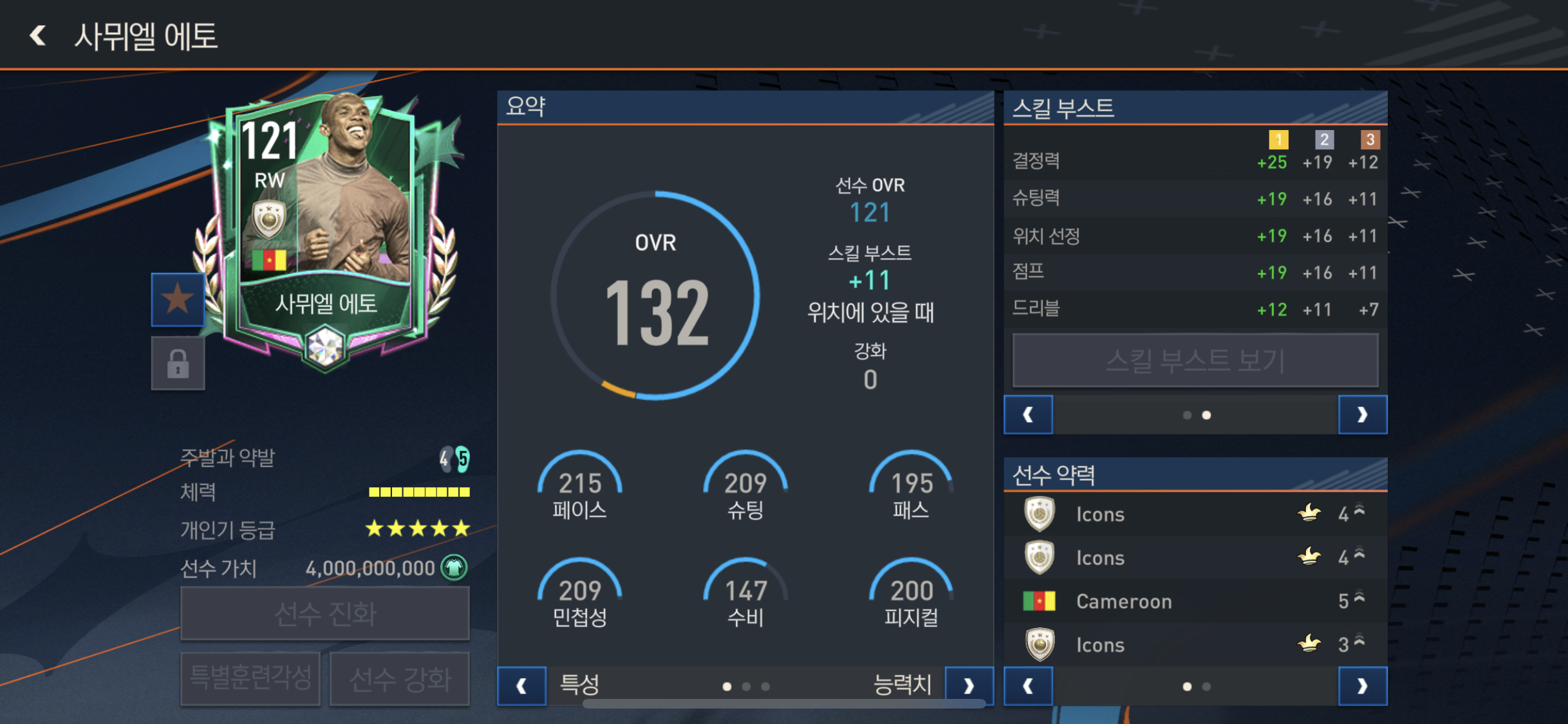 특별속성 플레어. 중거리슛 키커, 빠른 드리블, 플레이메이커!