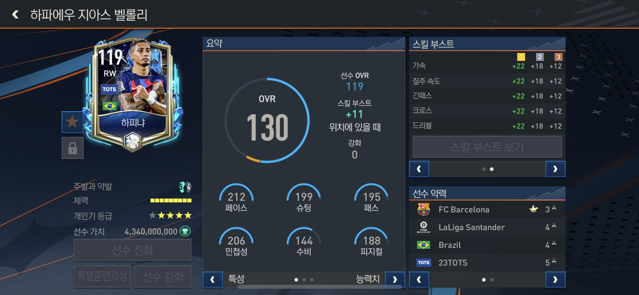 5진 6강 하피냐 가속과 질주속도 260 !!