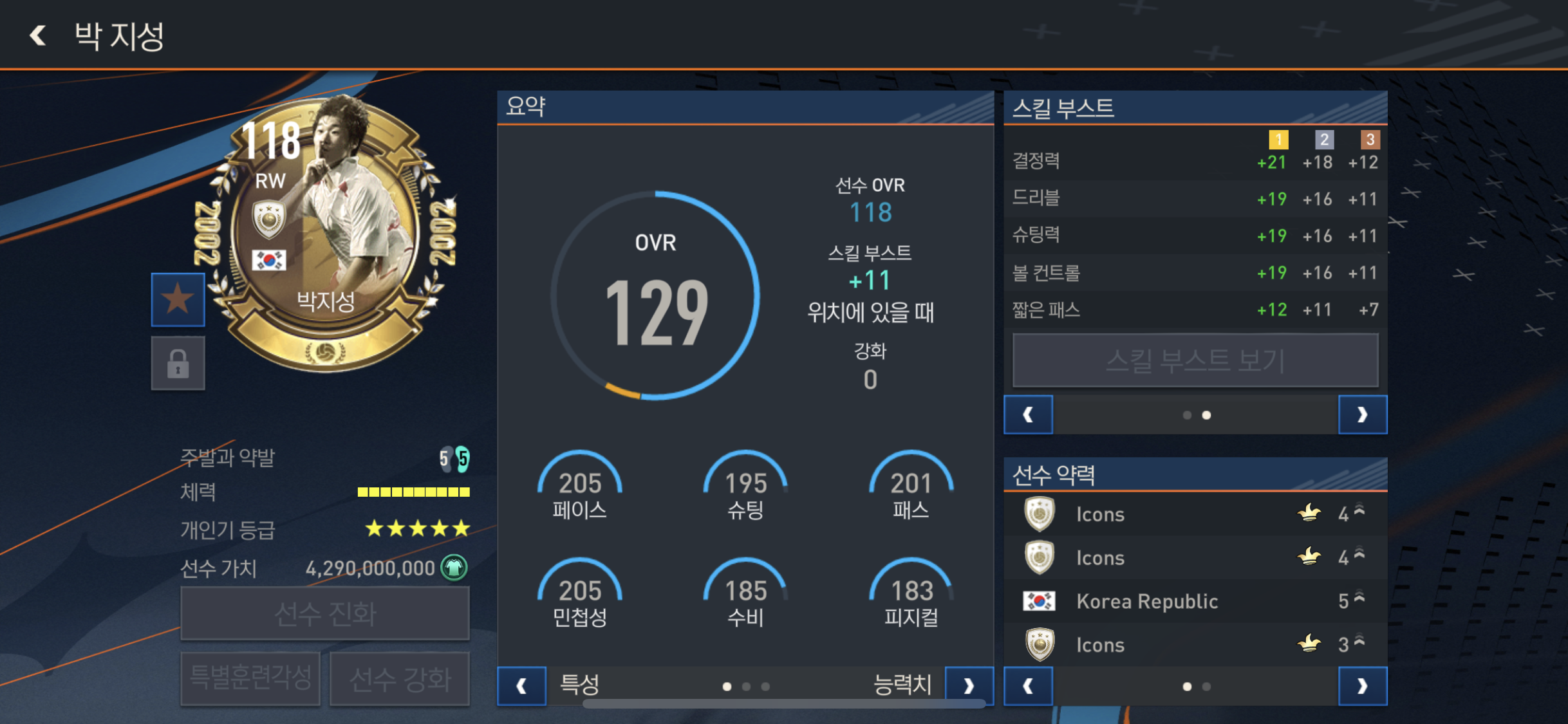 특별속성은 정교한슛, 중거리 슛키커, 플레어, 플레이메이커!