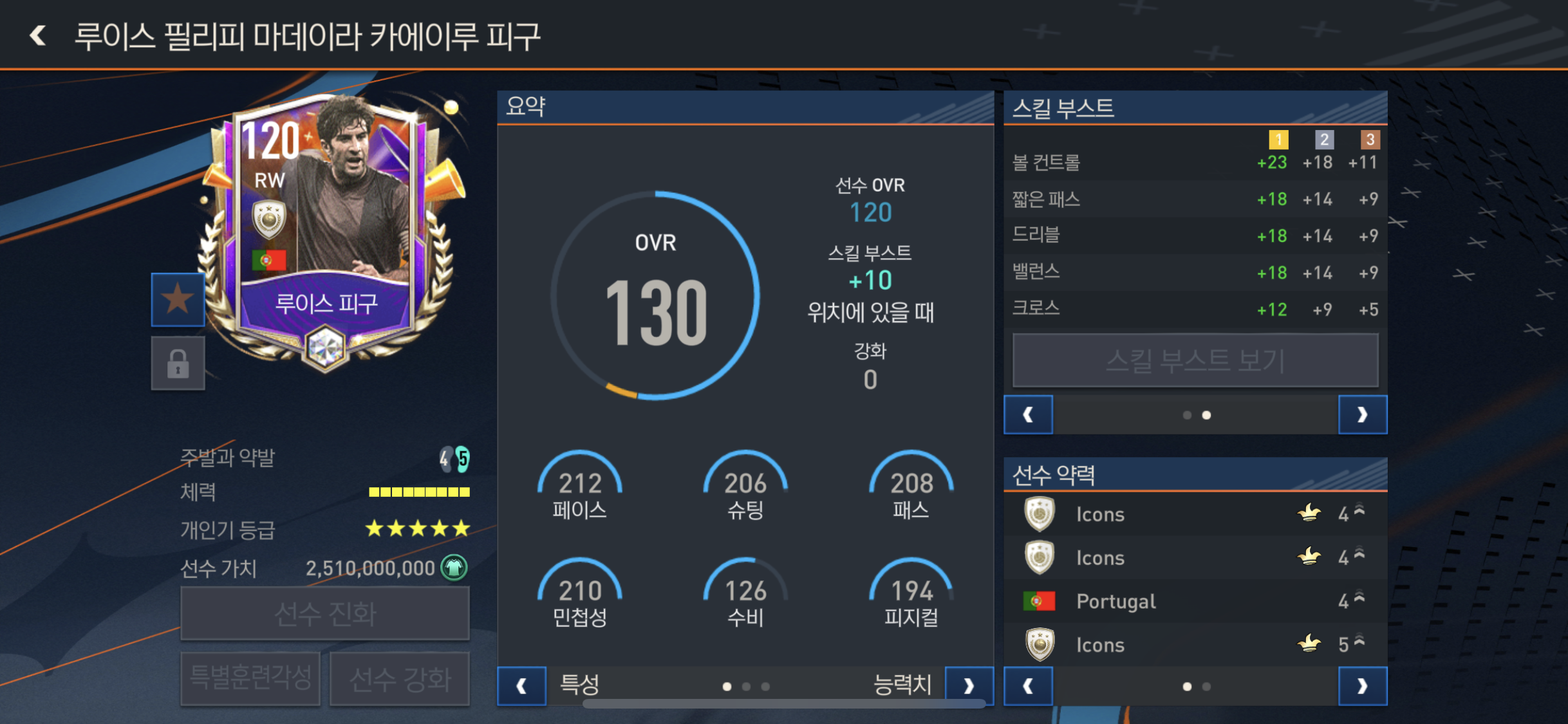 특별속성은 꾸준한선수, 얼리크로스, 빠른드리블,