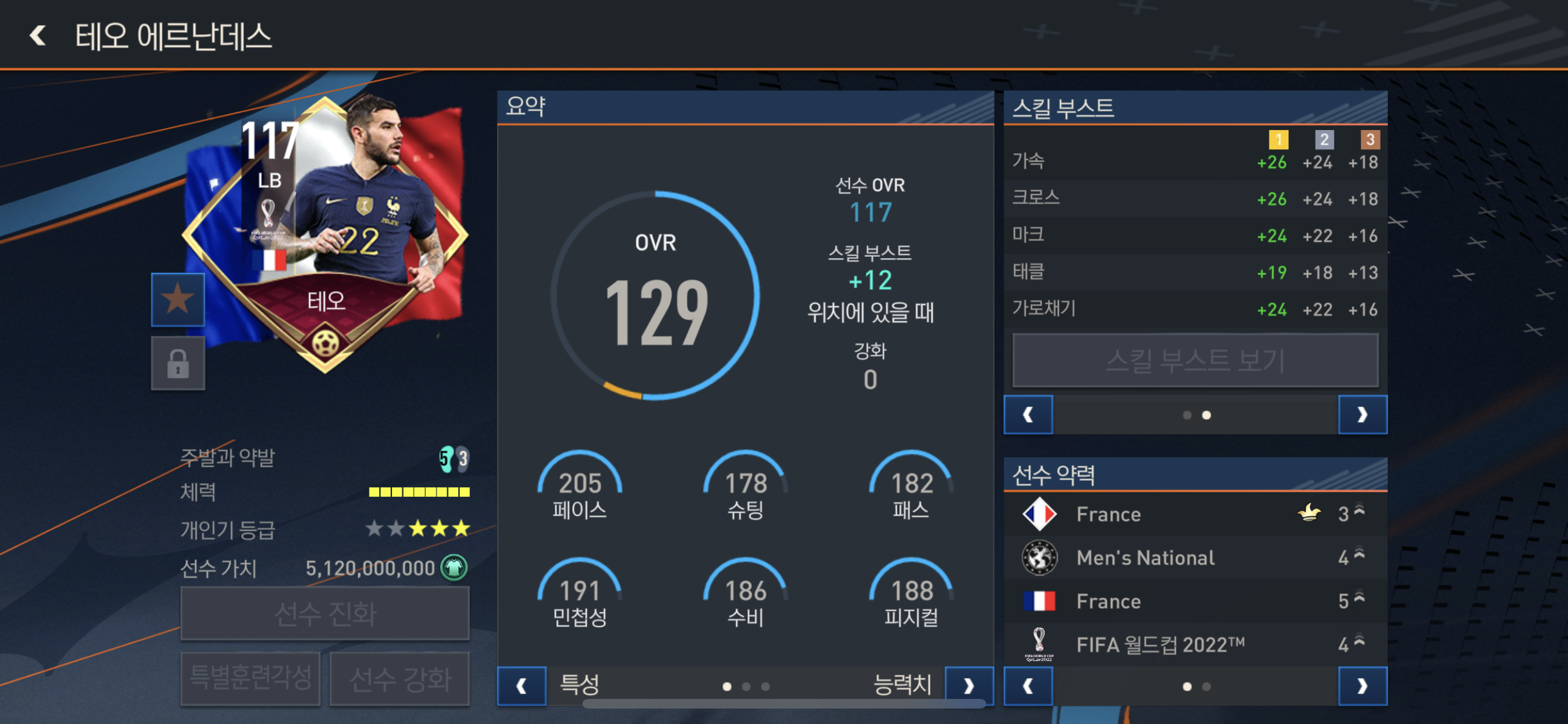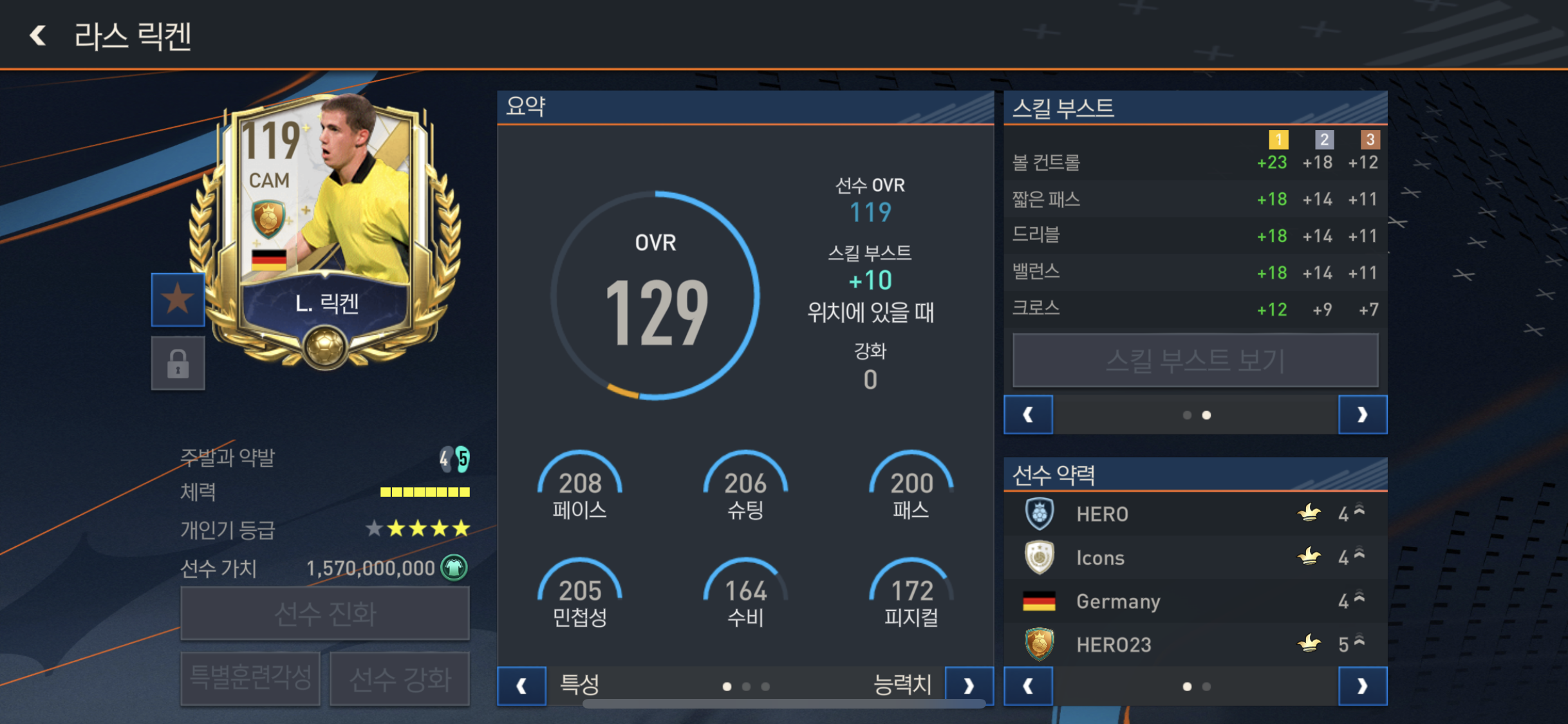 짧은패스, 중거리슛, 가속 , 드리블, 볼컨트롤이 올라가고!