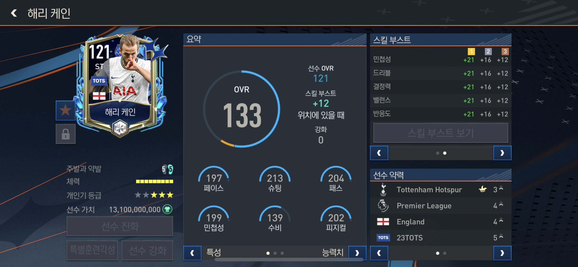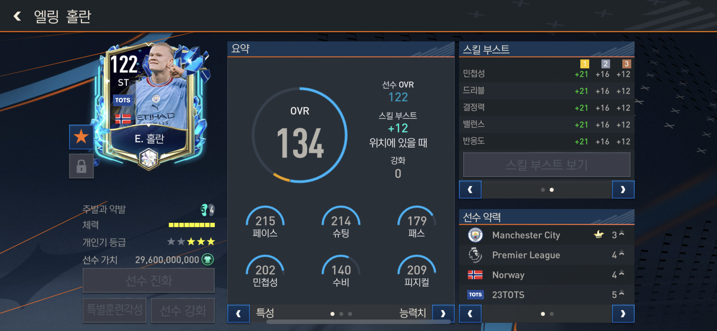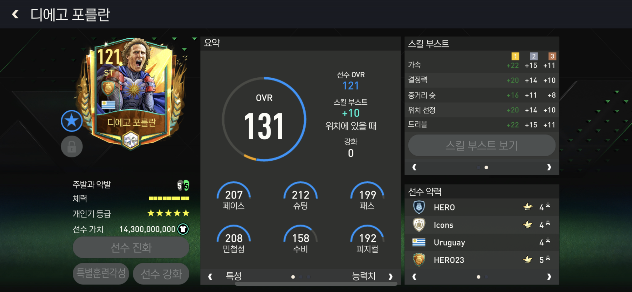결정력과 슈팅력 위치선정 드리블 힘까지 ST 스킬부스트 베스트중 하나!