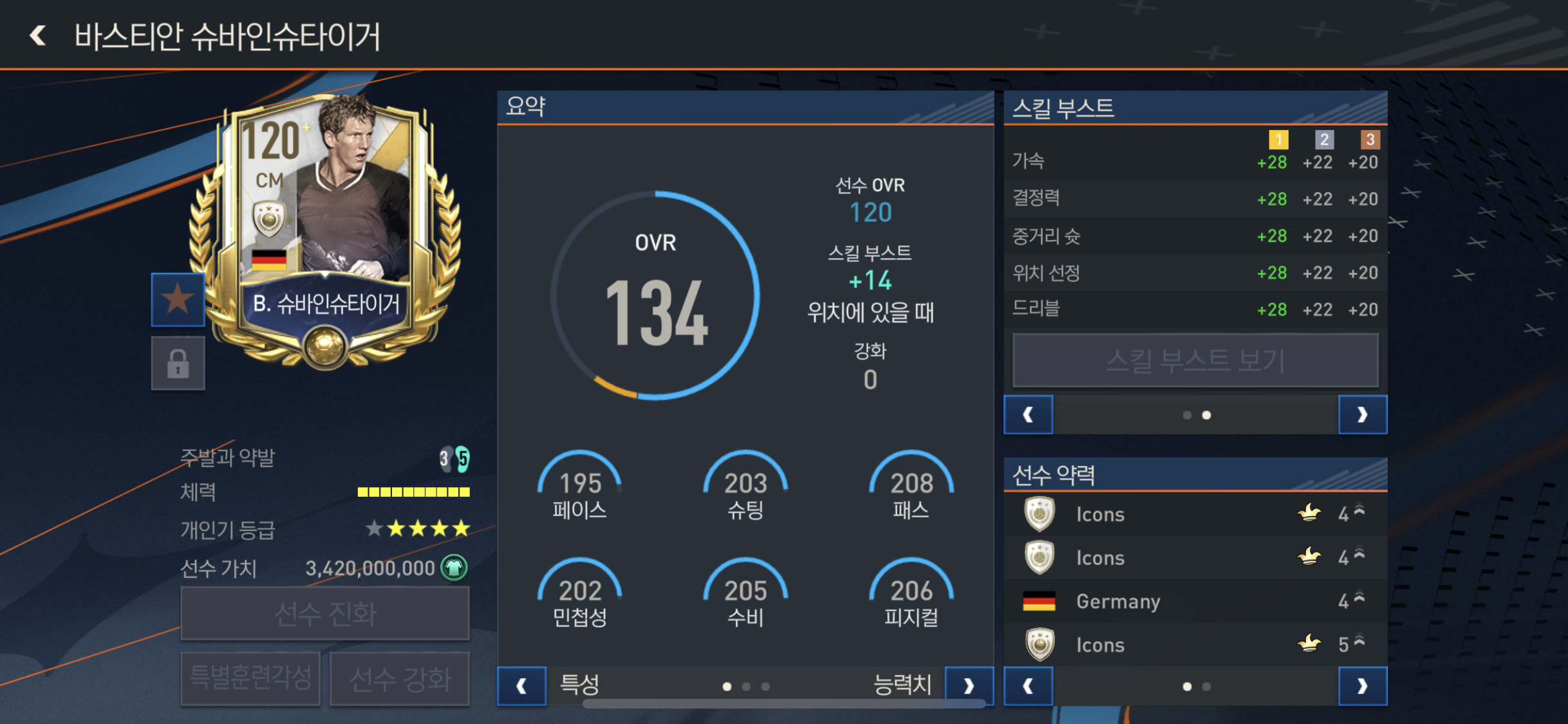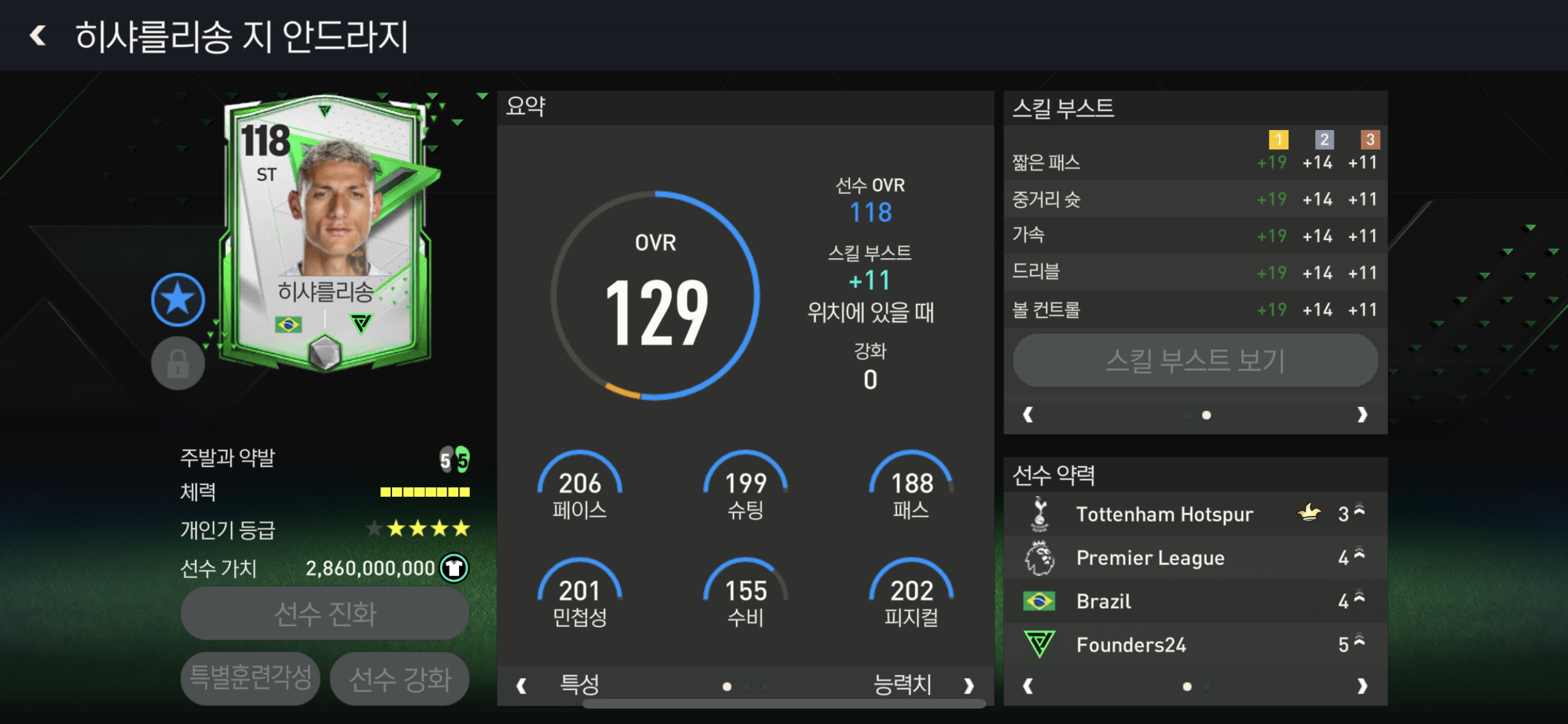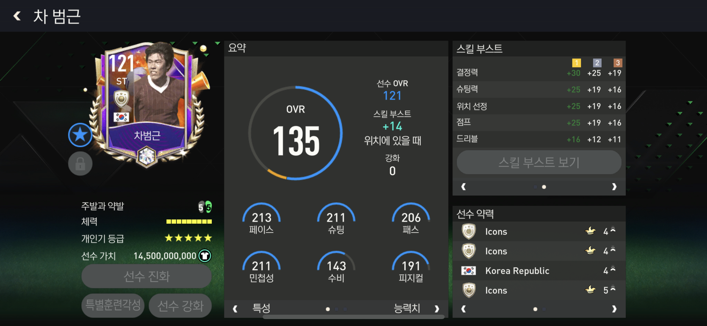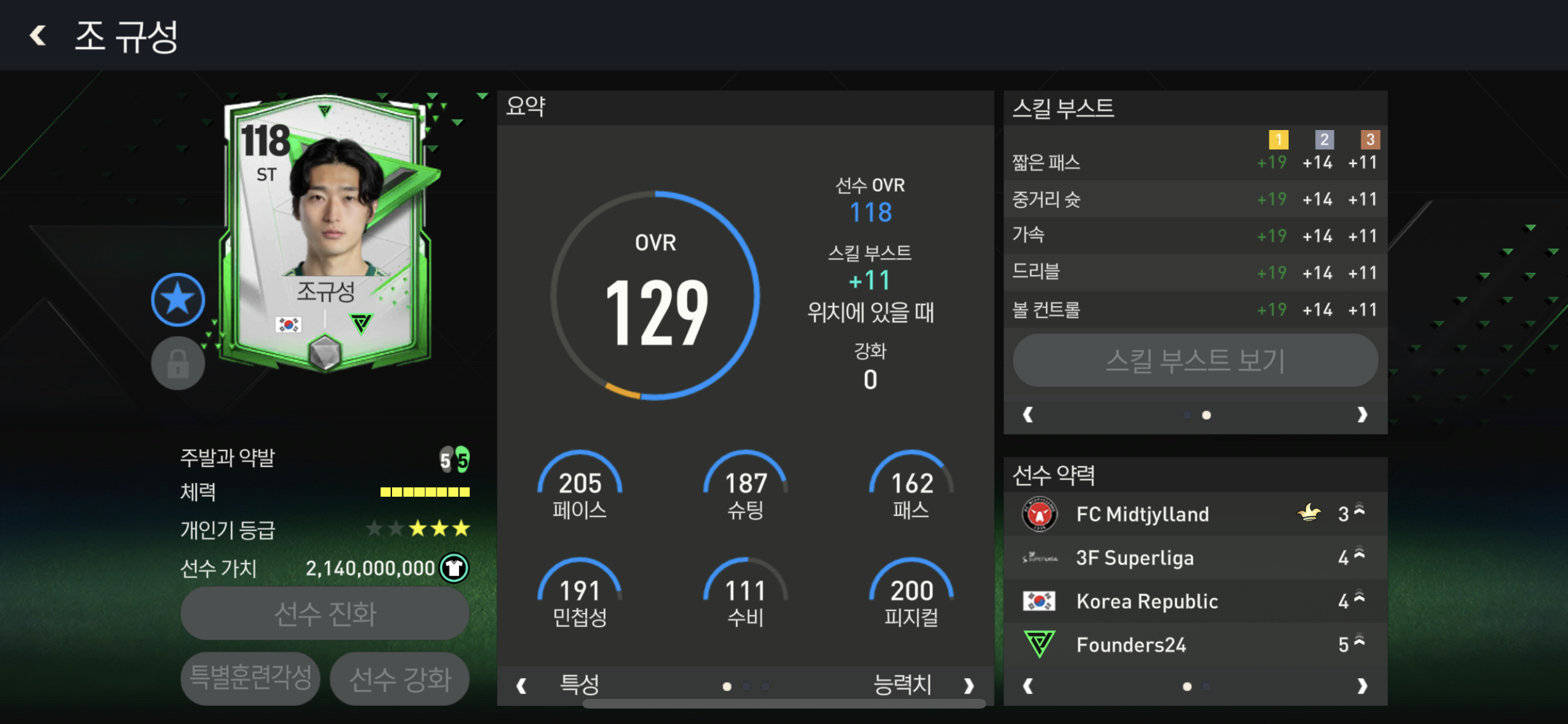 결정력과 슈팅력 위치선정 드리블 힘까지 ST 스킬부스트 베스트중 하나!