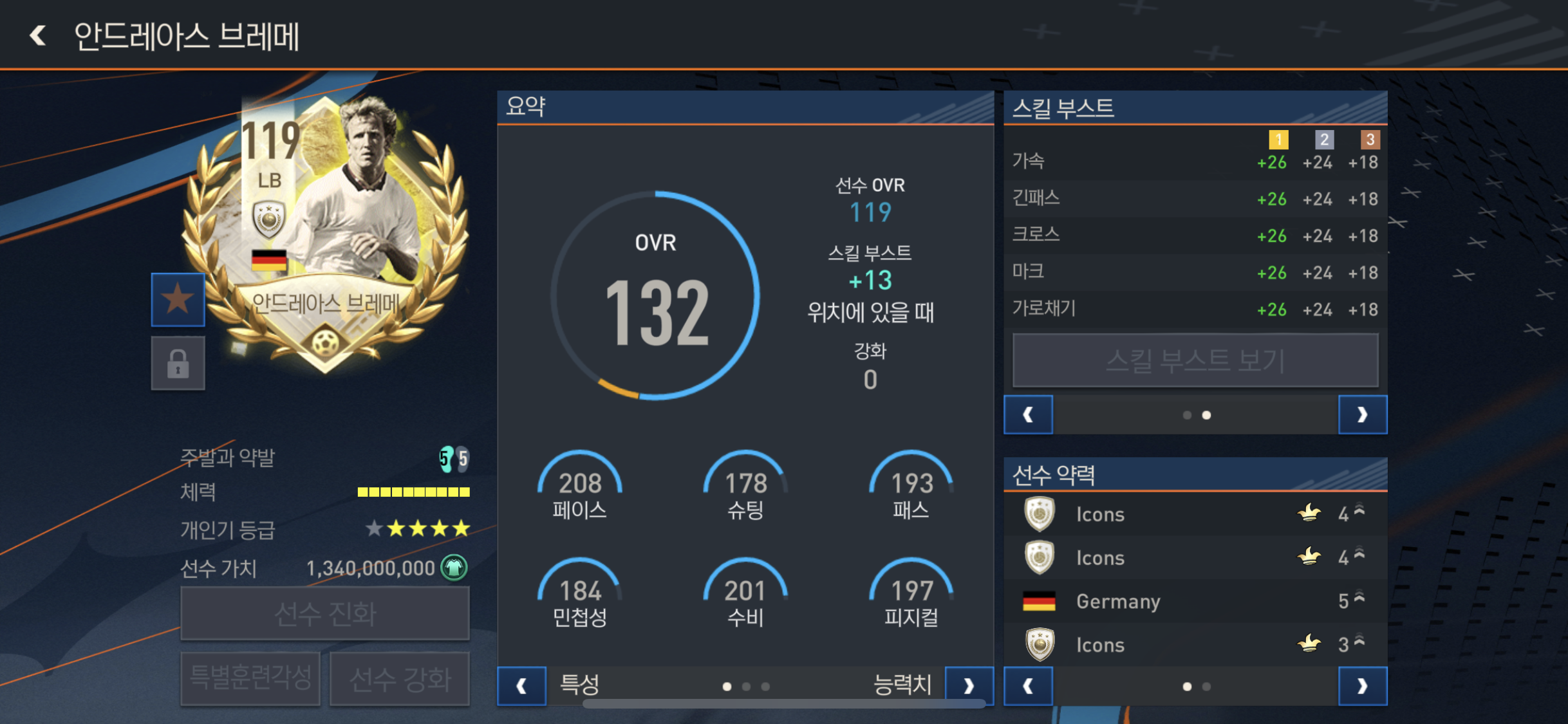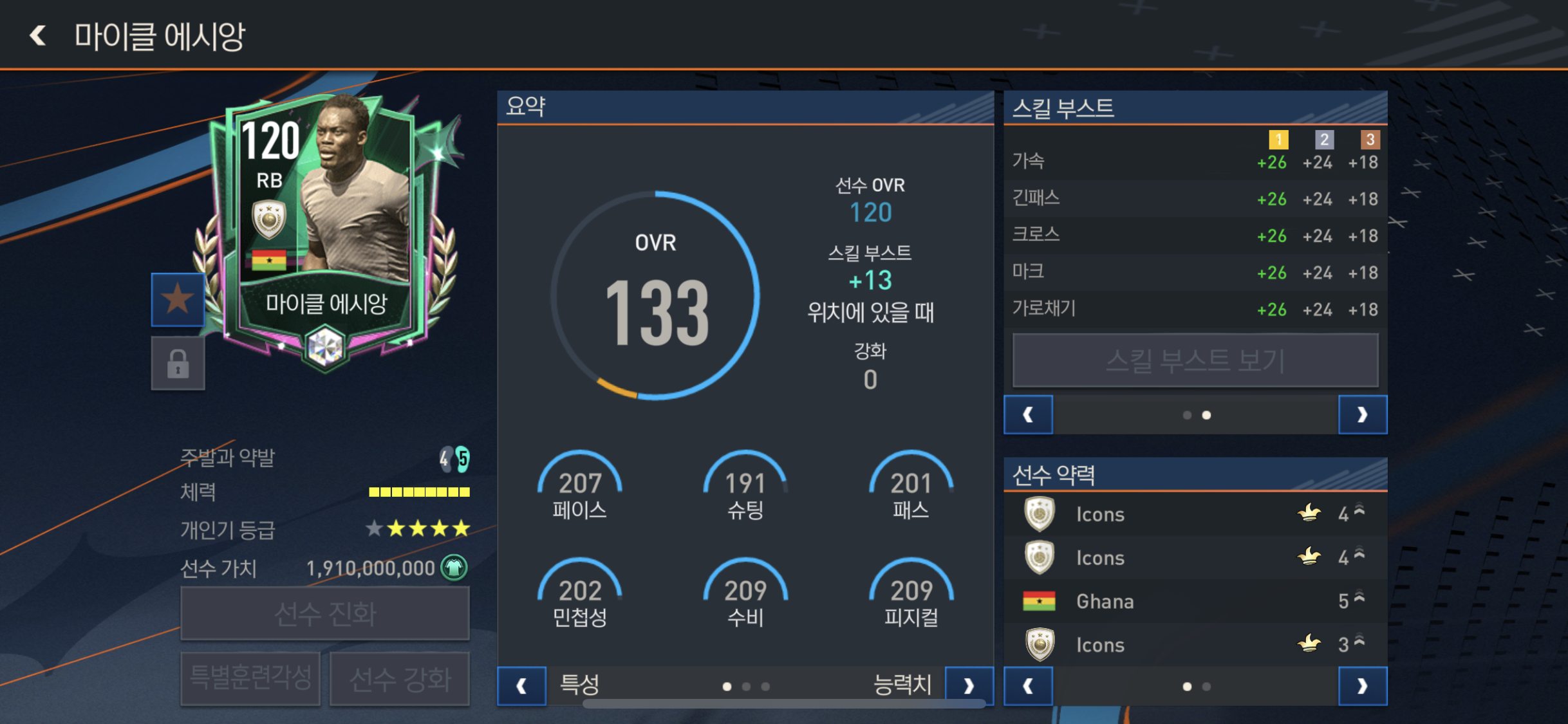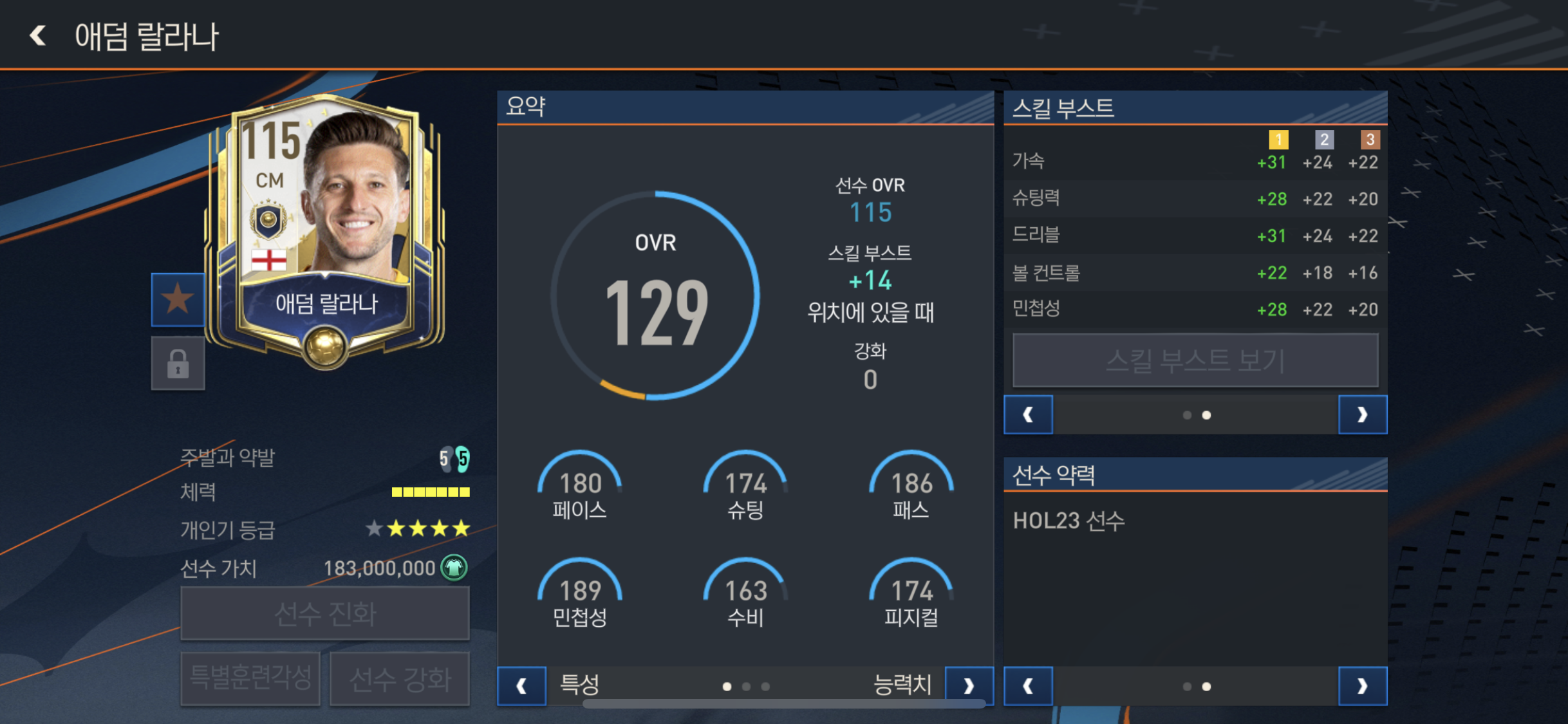가속과 마크 태클 가로채기 공격성을 올려주며 수비적인 부분에서 아주뛰어나보인다!